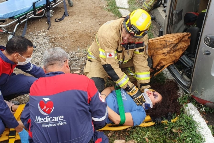 O cenário reproduziu uma colisão entre um automóvel e uma bicicleta, resultando em três vítimas, sendo duas delas presas às ferragens. A guarnição de salvamento do 5º Pelotão BM, sob comando do 2º sargento Valdecir, executou as técnicas de salvamento veicular e de atendimento pré-hospitalar, garantindo a estabilização do veículo, a retirada segura das vítimas e os cuidados iniciais. Na sequência, elas foram encaminhadas para unidades de saúde por ambulâncias do SAMU e da Medicare.