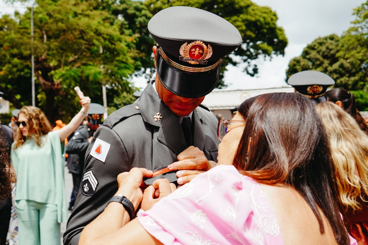 O momento mais emocionante da cerimônia foi a afixação das divisas pelos padrinhos e madrinhas, simbolizando a nova etapa assumida pelos formandos. Após o compromisso diante do Pavilhão Nacional e o tradicional “Fora de Forma”, encerrou-se a solenidade.