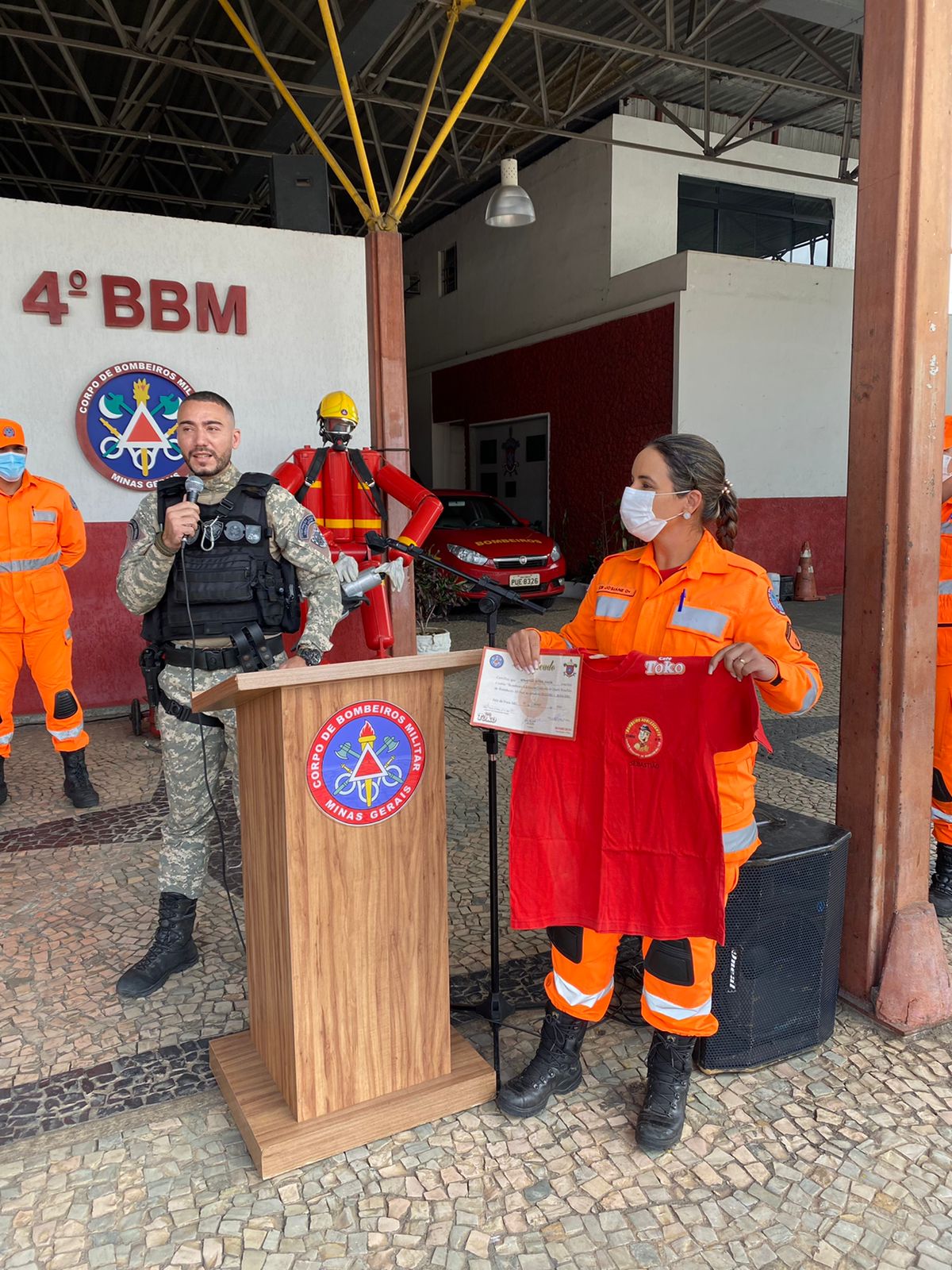 O evento contou com a presença do Comandante do 4°Batalhão de Bombeiros Militar, Tenente-Coronel Winderson Alain Moura, que fez a entrega de uma homenagem ao aluno, Tiago Rodrigues da Silva, que mais se destacou durante a fase presencial do curso.