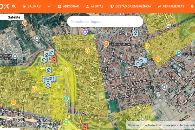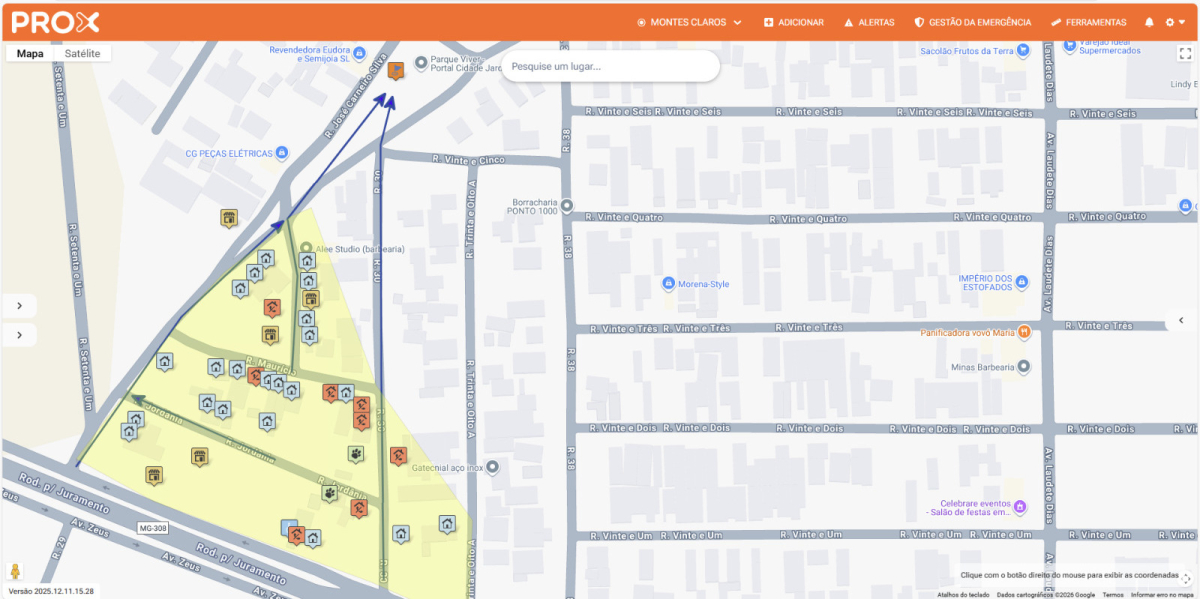 Para a execução do trabalho, foi utilizado o aplicativo PROX, uma ferramenta tecnológica desenvolvida para apoiar ações de mapeamento de áreas de risco, cadastro de populações vulneráveis e gestão de informações georreferenciadas. O PROX permite a coleta de dados em campo de forma padronizada, segura e integrada, facilitando o planejamento das ações preventivas, a emissão de alertas e a atuação coordenada entre os órgãos de Defesa Civil.