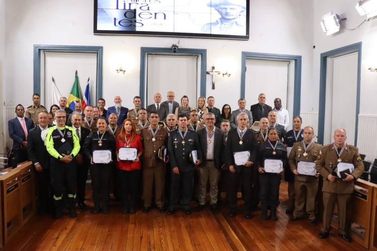 Na noite da última quinta-feira (16), militares do 3º Comando Operacional de Bombeiros (3º COB) e do 4º Batalhão de Bombeiros Militar (4º BBM) foram homenageados na Câmara Municipal de Juiz de Fora, onde ocorreu a sessão solene de outorga da Medalha Alferes Tiradentes. Todos os anos, o Legislativo reconhece o trabalho e a dedicação desses profissionais que atuam na cidade e na região. A cerimônia aconteceu no Plenário, com a presença de familiares e amigos dos homenageados.