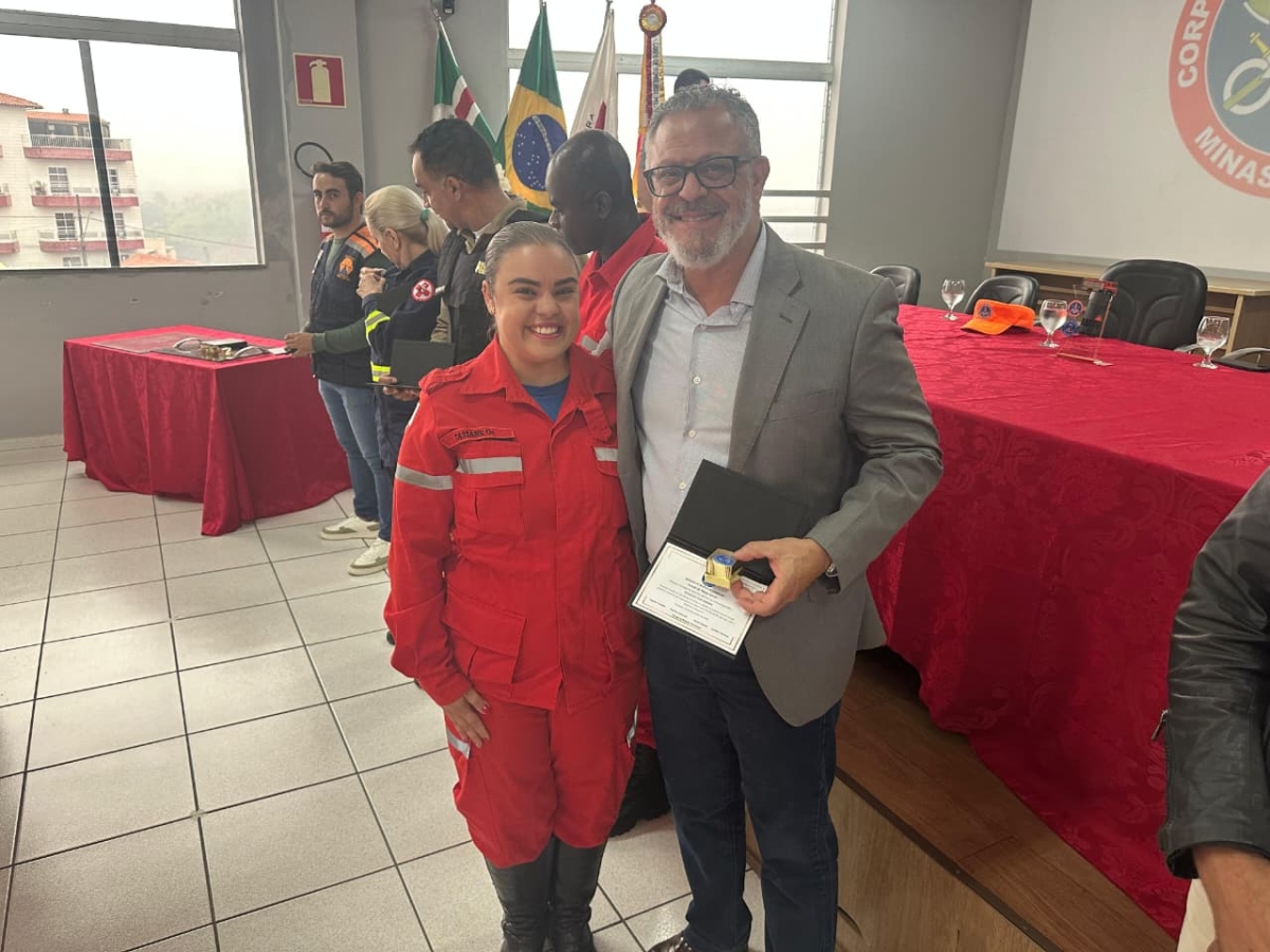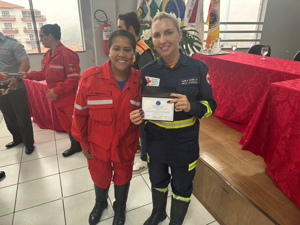 Também foi homenageada a médica veterinária Carla Sassi, presidente do Grupo de Resposta a Animais em Desastres (GRAD), referência nacional na área, em reconhecimento ao apoio contínuo prestado à Brigada Municipal de Carandaí e ao CBMMG, especialmente no atendimento e encaminhamento de animais resgatados em ocorrências.